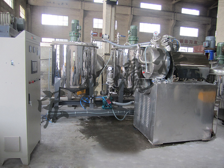 加料泵將預分散的材料送人研磨桶,研磨筒內裝有研磨介質,磨細后的物料經動態分離器排出,視產品細度不同,可采用單臺連續或多臺串聯連續研磨工藝。